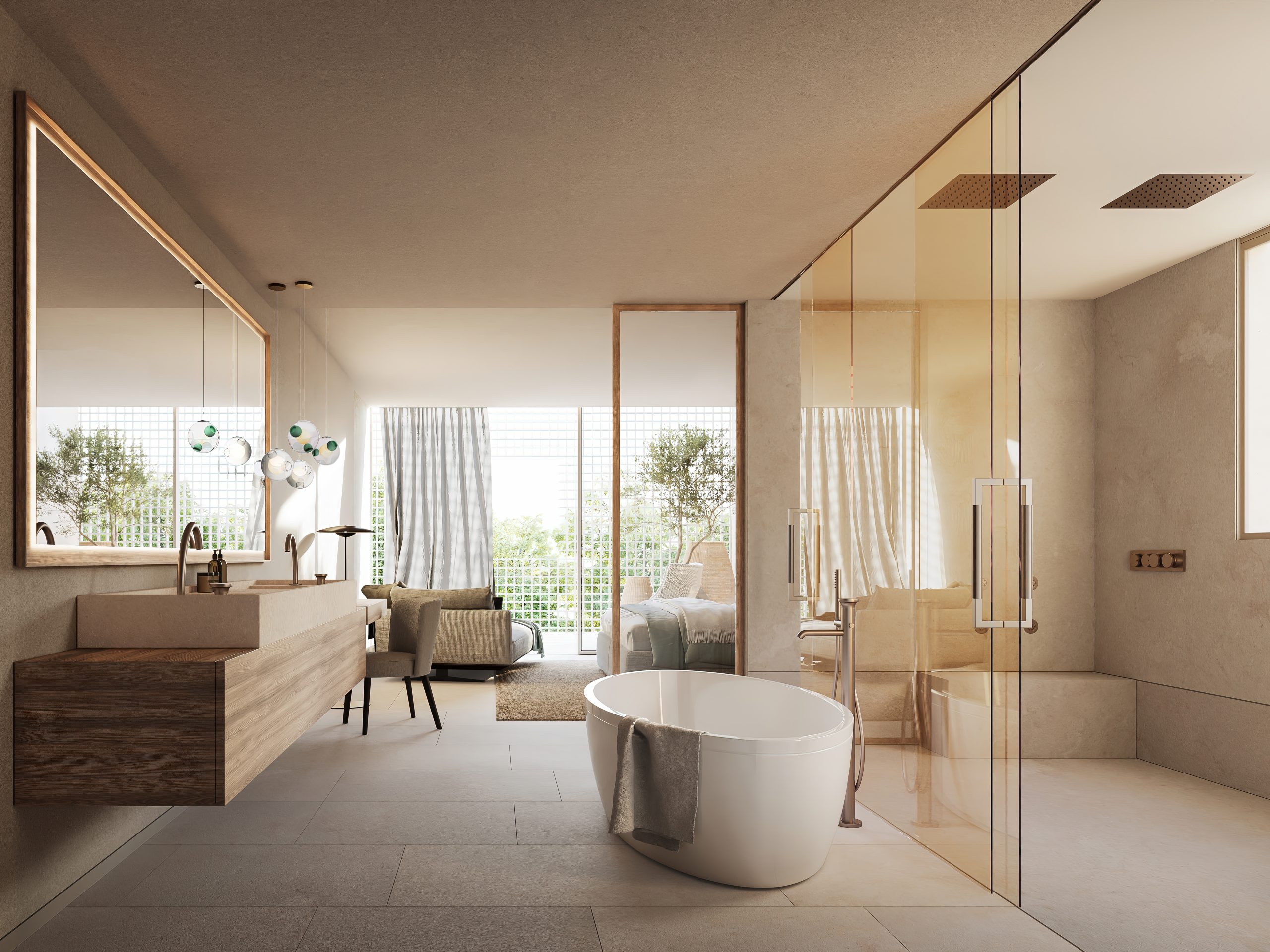 Special attention has been paid to the use of locally sourced and sustainable materials. Furthermore, the metal latticework covering each residence’s personal quarters is not only a stunning visual enhancement but – loosely based on traditional Mallorcan shutter design – allows for the free movement of air to keep the buildings cool while also filtering out direct sunlight.